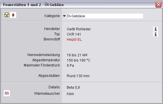 eine Feuerstätte mit Gebläse für den Brennstoff Heizöl. Eine Übersicht über die in kesa-aladin verwendeten Pictogramme finden Sie im Querverweis.